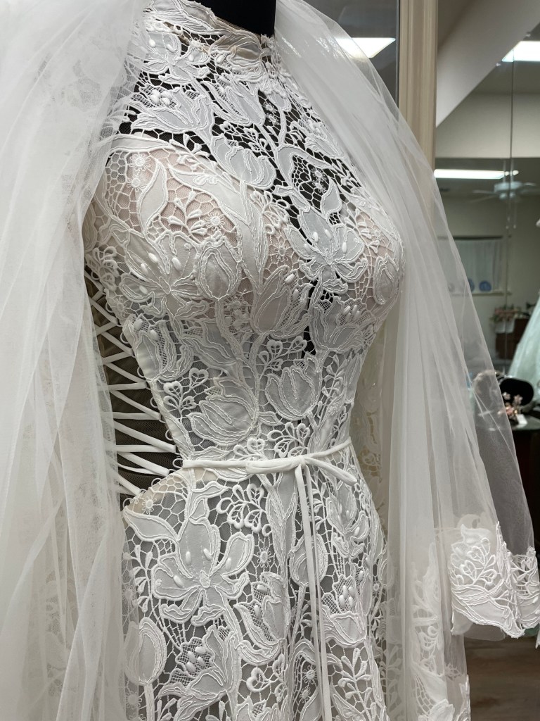 Six weeks ago I began working in an appointment-only bridal salon. Our small staff spends day after day with brides and their various accoutrements; gowns, veils, petticoats and jewelry. As consultants, we walk with our brides almost a full year; from gown selection, through multiple fittings, bridal portraits, and ultimately to their wedding day. If they are planning a destination wedding, we will even professionally pack their gown and accessories for them. I like to tell our new brides, “This is the beginning of a beautiful relationship, we’re here to help every step of the way.”